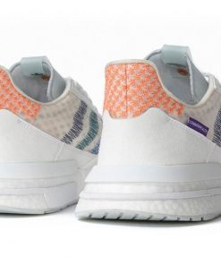 Exploring elements of translucency and fluidity, the ZX 500 RM Commonwealth is inspired by the coastal living of Virginia Beach, Los Angeles and the Philippines. The shoe is constructed from a synthetic suede with translucent monofilament mesh underlays and TPU welded overlays for structure, with embroidered Three Stripe marks and heel details in soft, aquatic colors.