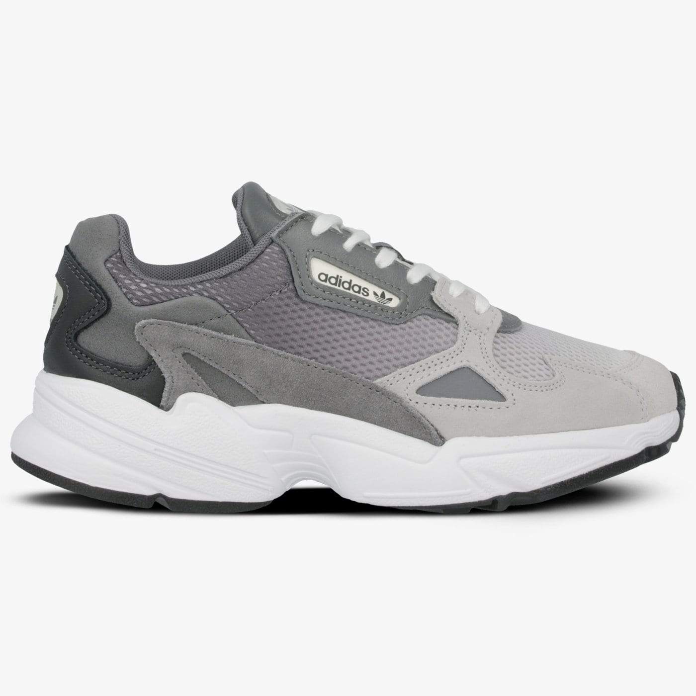 Adidas Falcon W shoes for ladies. These trendy women’s Adidas sneakers are released in the color: bright grey with dark gray, white and black.