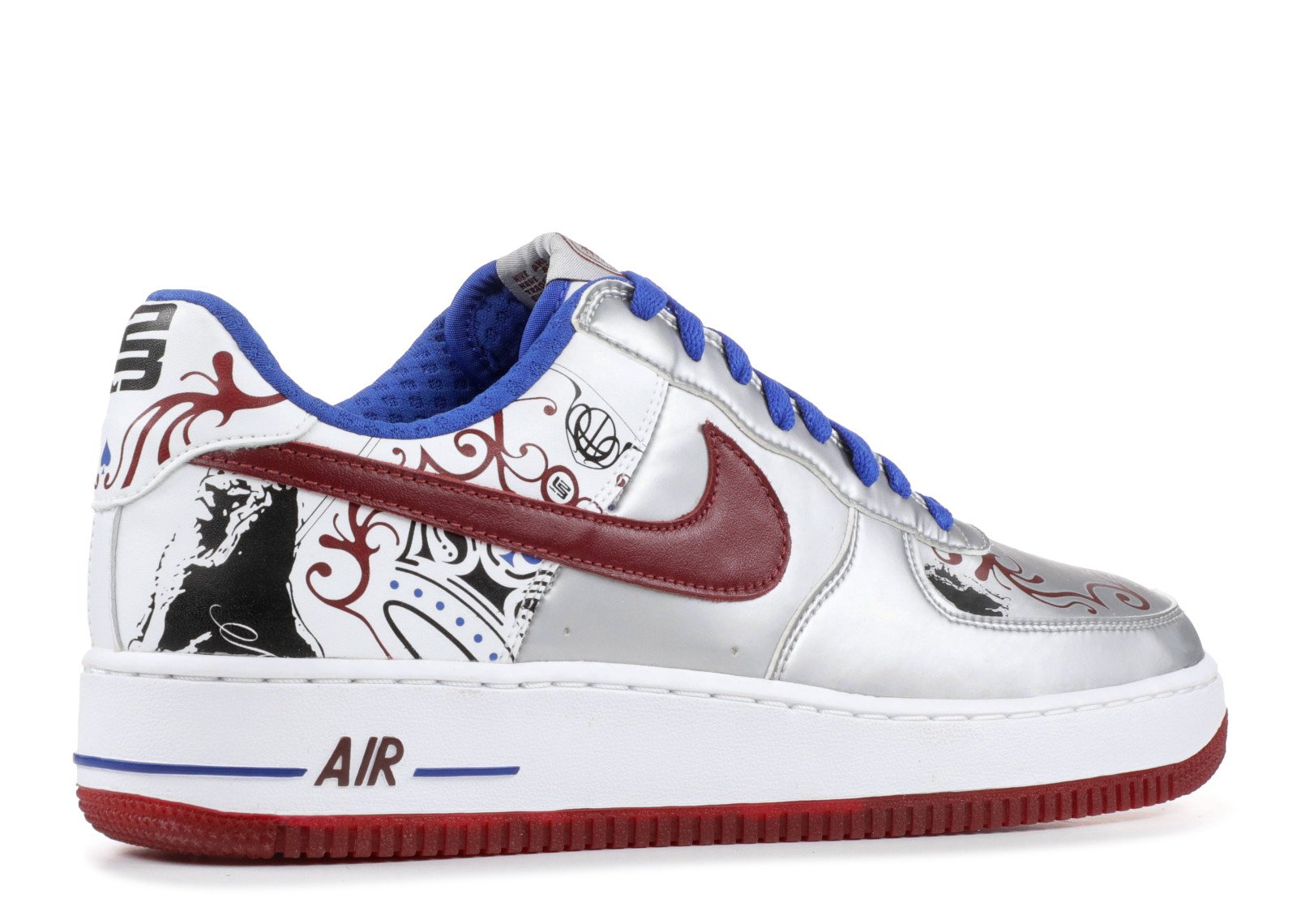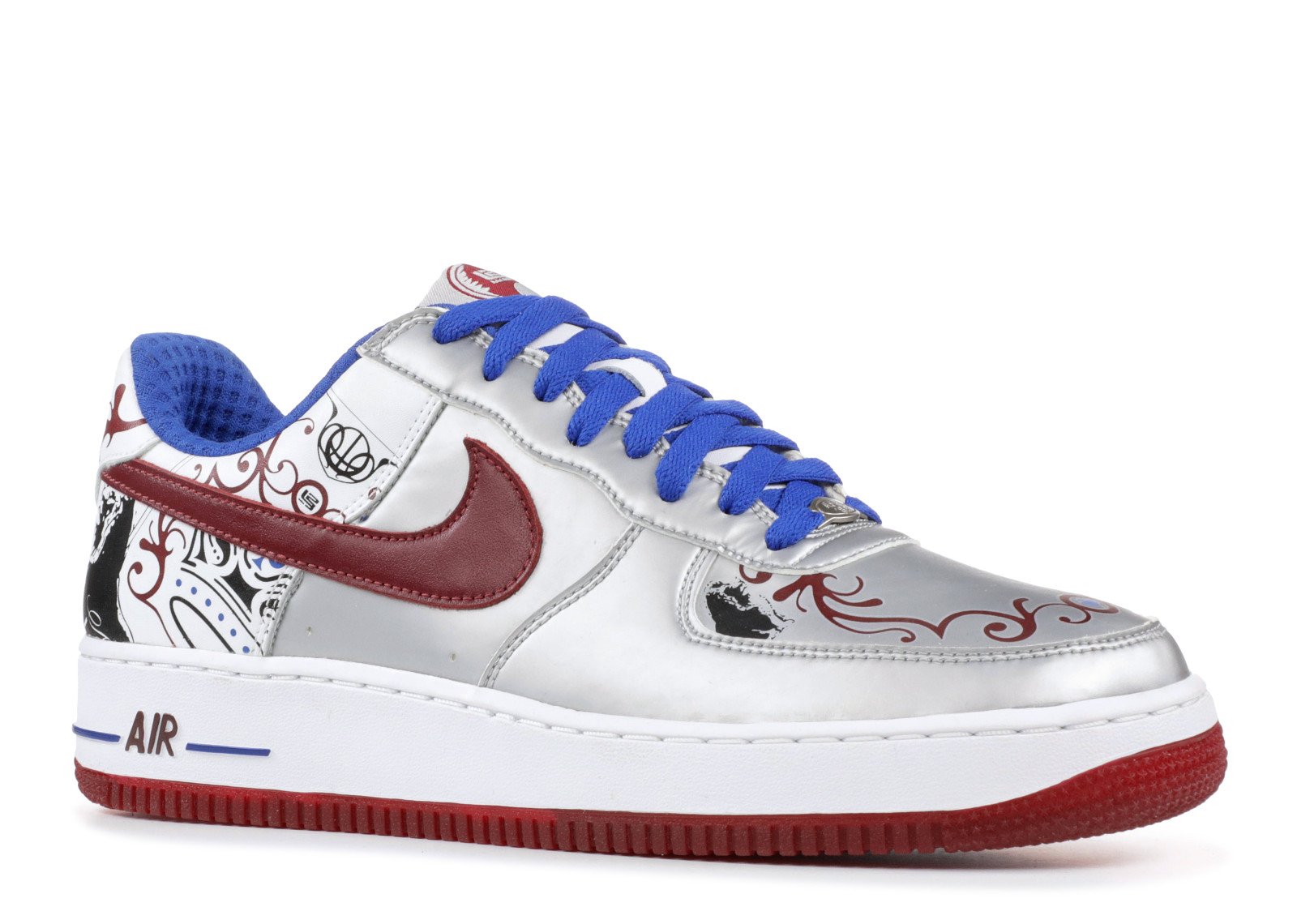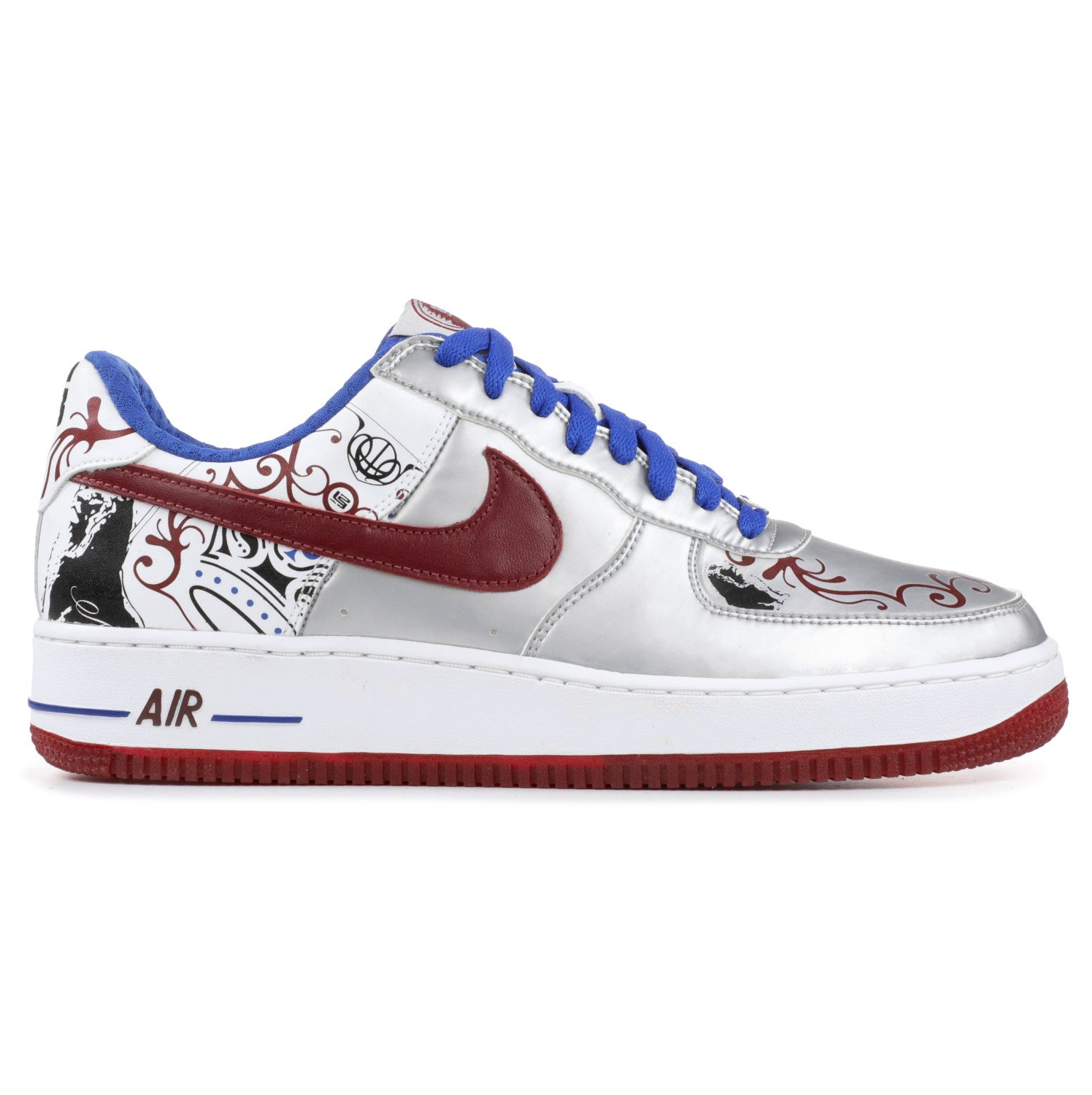 Released in 2006, the Air Force 1 Premium (Lebron) ‘Collection Royale’ is a tribute to some of Nike’s best athletes including Serena Williams, Ronaldinho and LeBron. The design features a metallic silver upper with a graphic crown print, red Swoosh, and blue laces and liner. Underfoot, a crisp white full-length Air sole is topped off by a red rubber outsole.