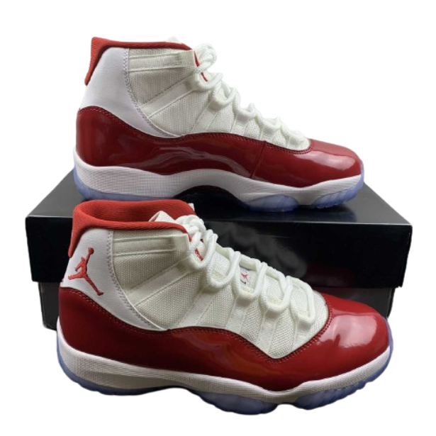Air Jordan 11 Retro “Cherry” AJ11 white and red men’s cultural basketball shoes, produced by a well-known domestic manufacturer, with the same origin as the original shoes, original data cardboard development, original carbon board, and built-in full-length Sole air cushion. Original file, electric embroidery, Jump Logo, shoe upper punching standard points, beautiful pointed original shoes, matching degree up to 98%. Size: 36-47 (half)