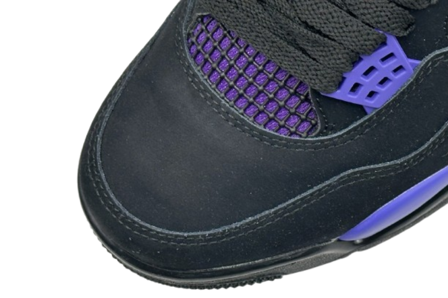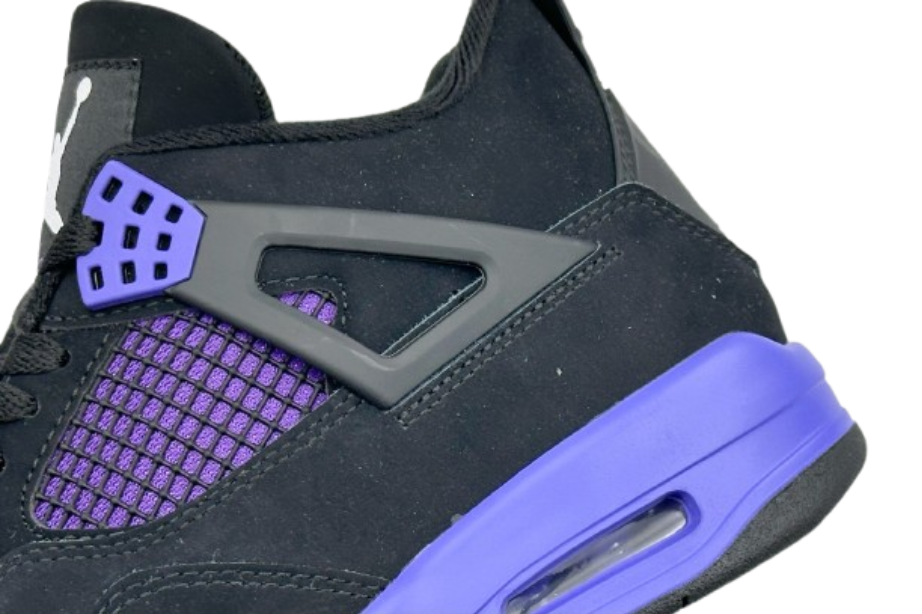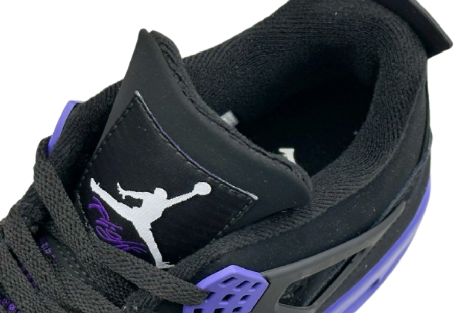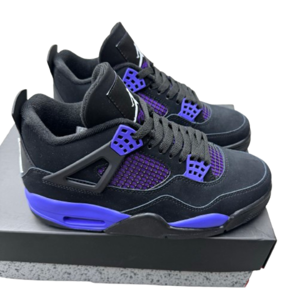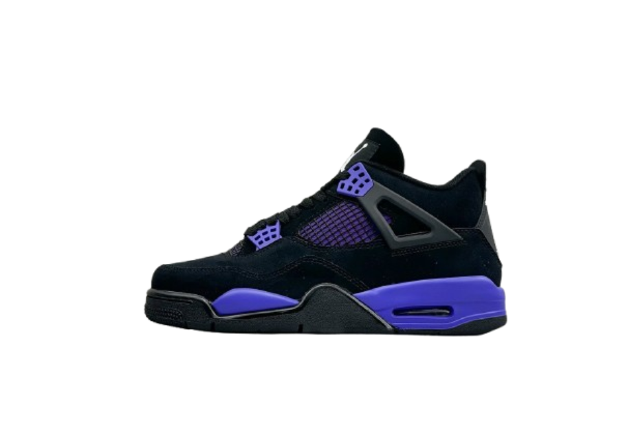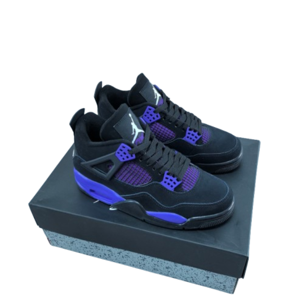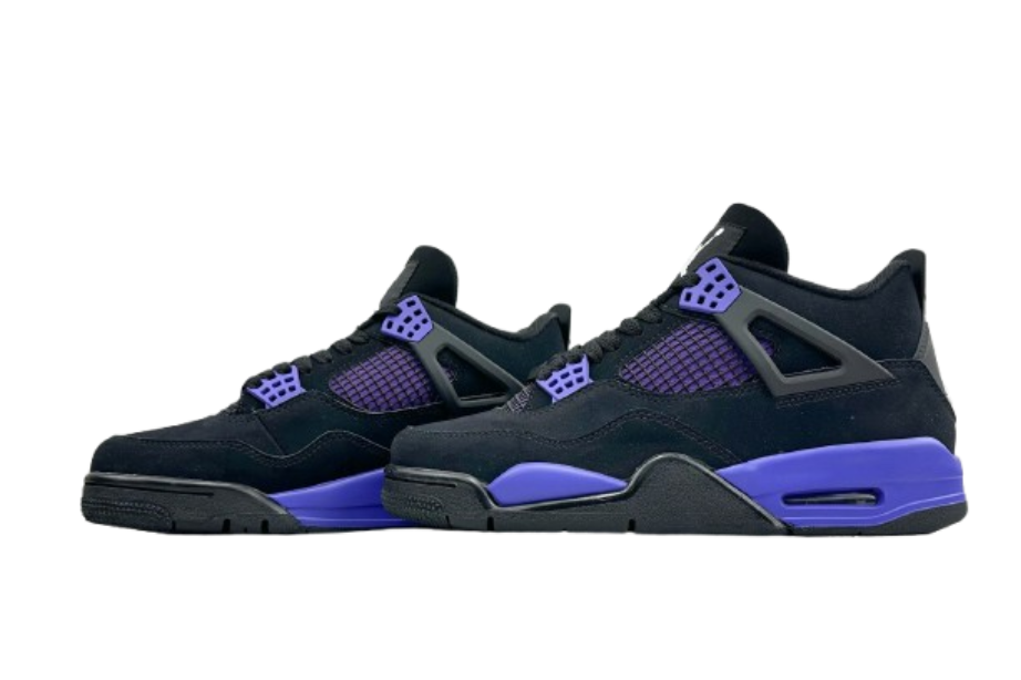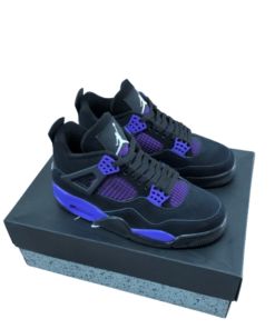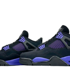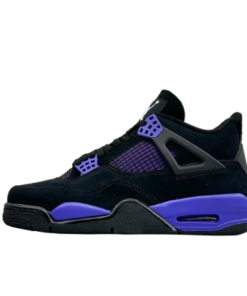 The Air 4 Retro “Purple Th” Black Purple 4 Generation 4 Qiao 4 Black Purple Men’s and Women’s Basketball Shoe Series features a black matte as the main base color, complemented by purple details and purple lace buckles, making it simple and versatile; The Jumpman Logos and Flight on the iconic tongue are embellished with white embroidery to enhance the luxurious texture; The supporting part on the side is presented in black, catering to the theme of the shoe. The side grid is decorated with purple accents, and the classic Jfumpman logo is embellished with white at the heel. The midsole is presented in a black purple color scheme, and finally the design is completed with a midsole equipped with a windowed Air Max cushion.