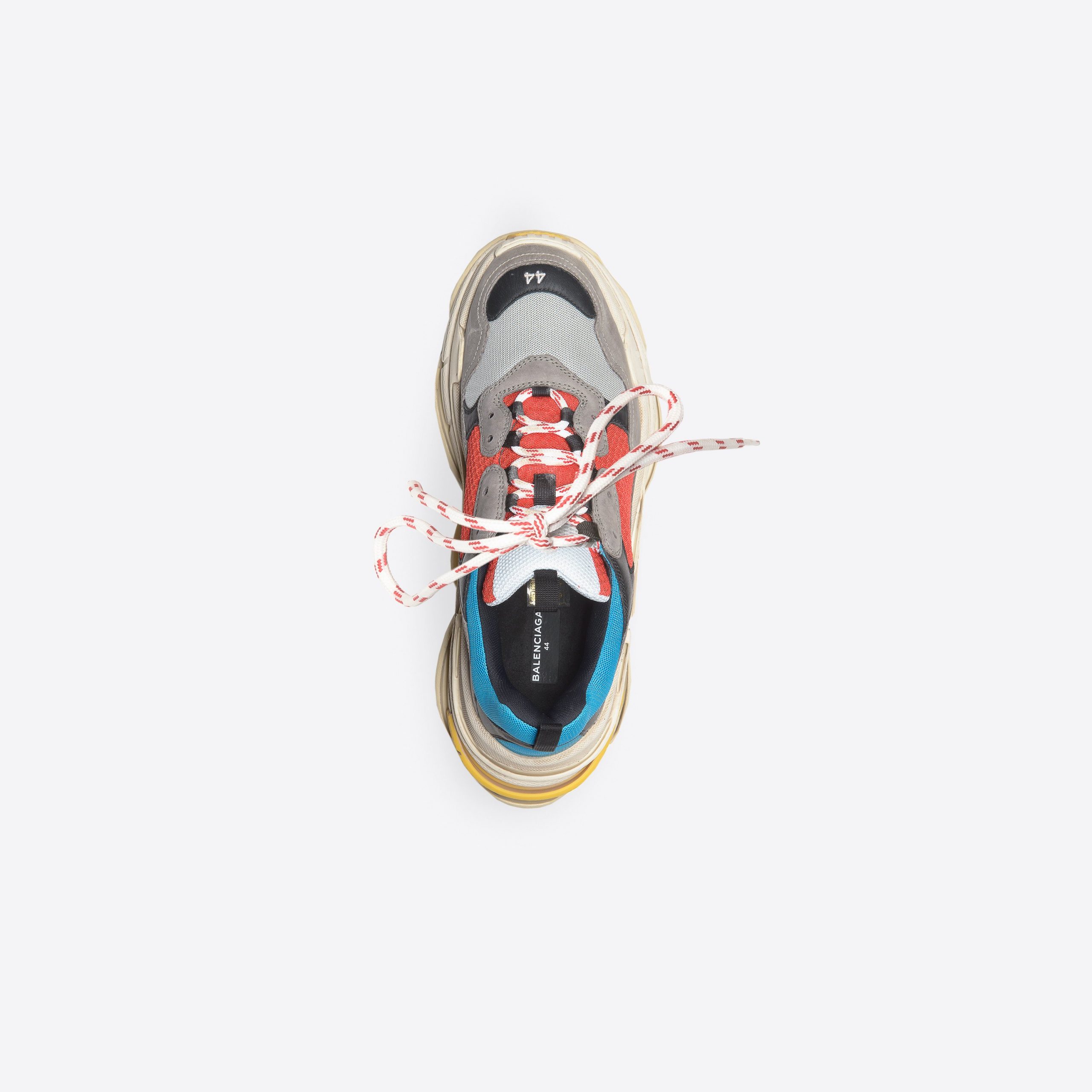 • Oversized sneakers • Multimaterials: nubuck and meshes • Washed, vintage effect • Quilted effect • Bicolor round shaped laces • Size written on the toe • Embossed Balenciaga logo on the side, back & under the sole • Embossed “”Triple S”” on the tongue • Complex sole • 10 mm arch • Made in China • Wipe with a soft clean cloth