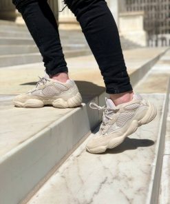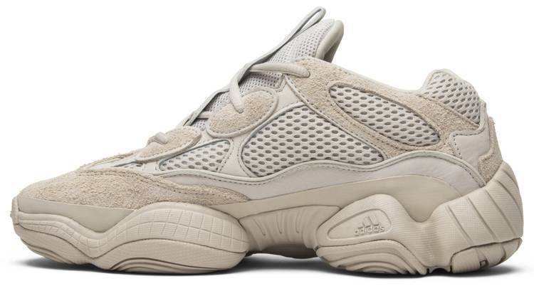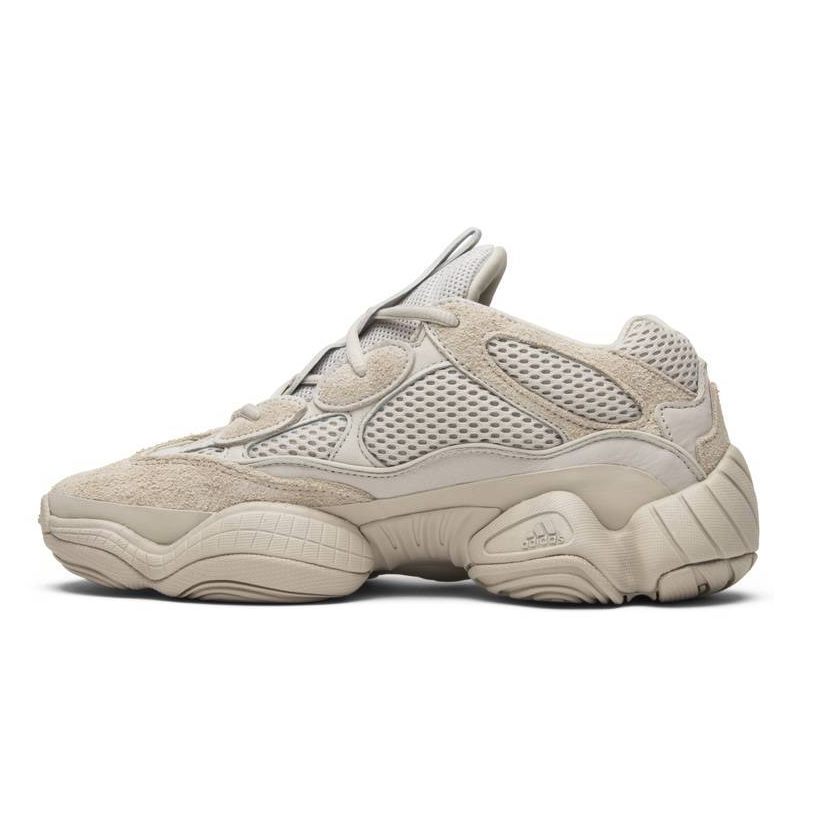 Initially released in February 2018 as a limited pre-order in New York and Los Angeles, the Yeezy 500 ‘Blush’ underwent a general release in April 2018. Its moniker is a fitting one, as the monochromatic light taupe finish barely registers as a color. The subdued palette is contrasted by a bold silhouette, featuring a paneled mesh and suede upper combined with a hefty midsole reminiscent of adidas’ Feet You Wear’ technology of the 1990s.