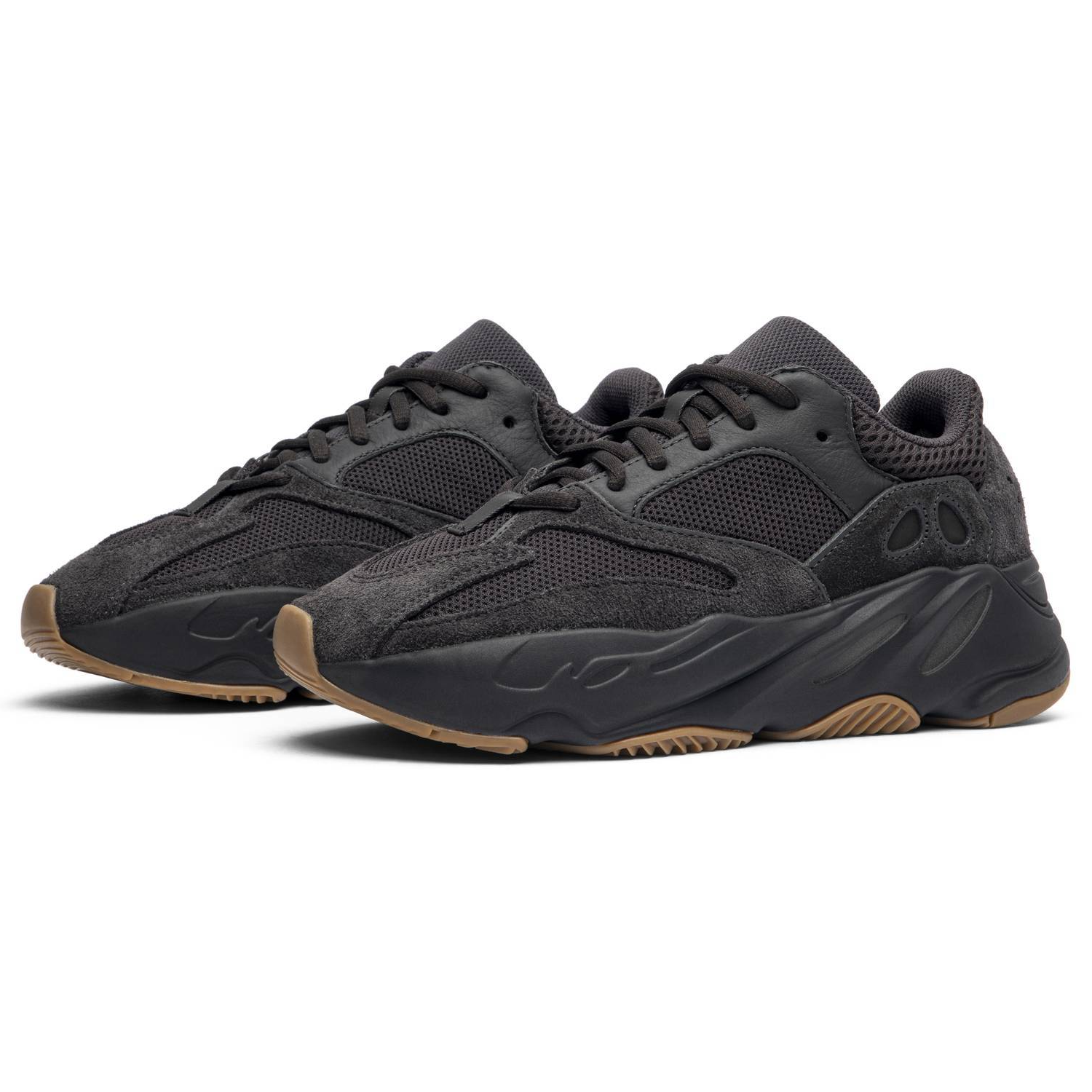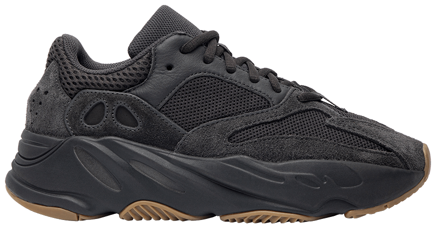The Yeezy Boost 700, designed by music and fashion icon Kanye West, first debuted at the Yeezy Season 5 fashion show in February 2017. This ‘Utility Black’ colorway from June 2019 sees the design in a mesh upper with both plush suede and smooth leather overlays. At the bottom, the Yeezy Boost 700’s chunky midsole encapsulates adidas’ revolutionary Boost cushioning in a full-length format, underscored by gum rubber tread.