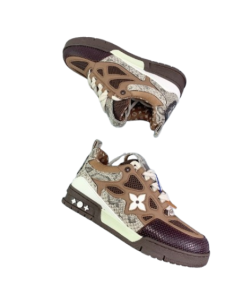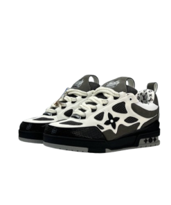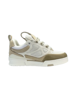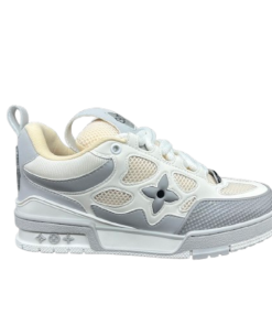 LOUIS VUITTON Leather lace up Fashionable Board Shoes White Gray OG0424113